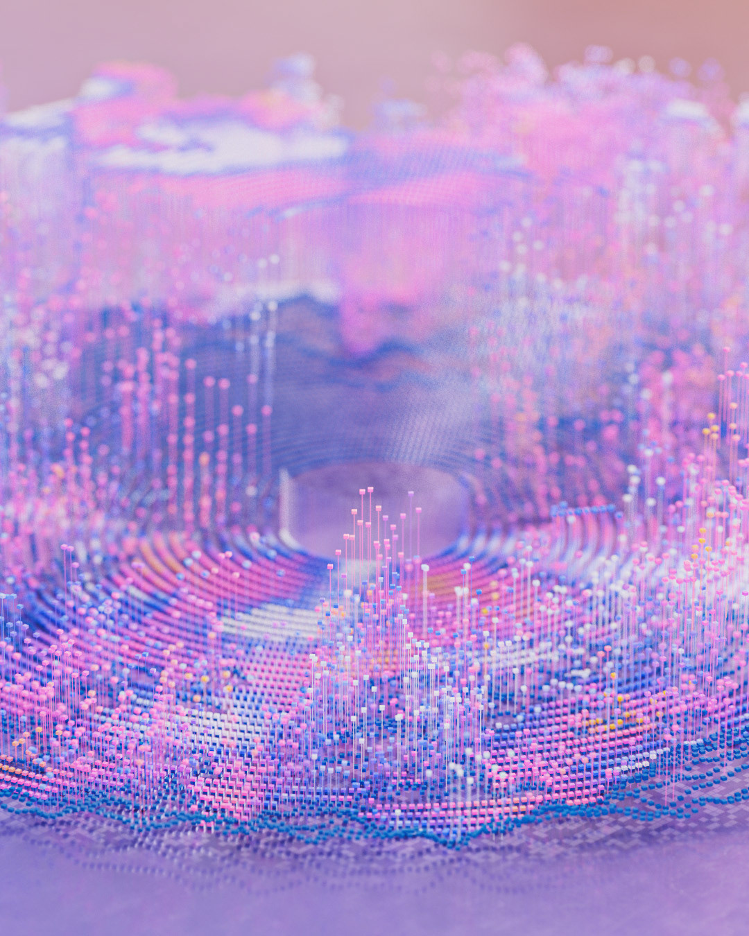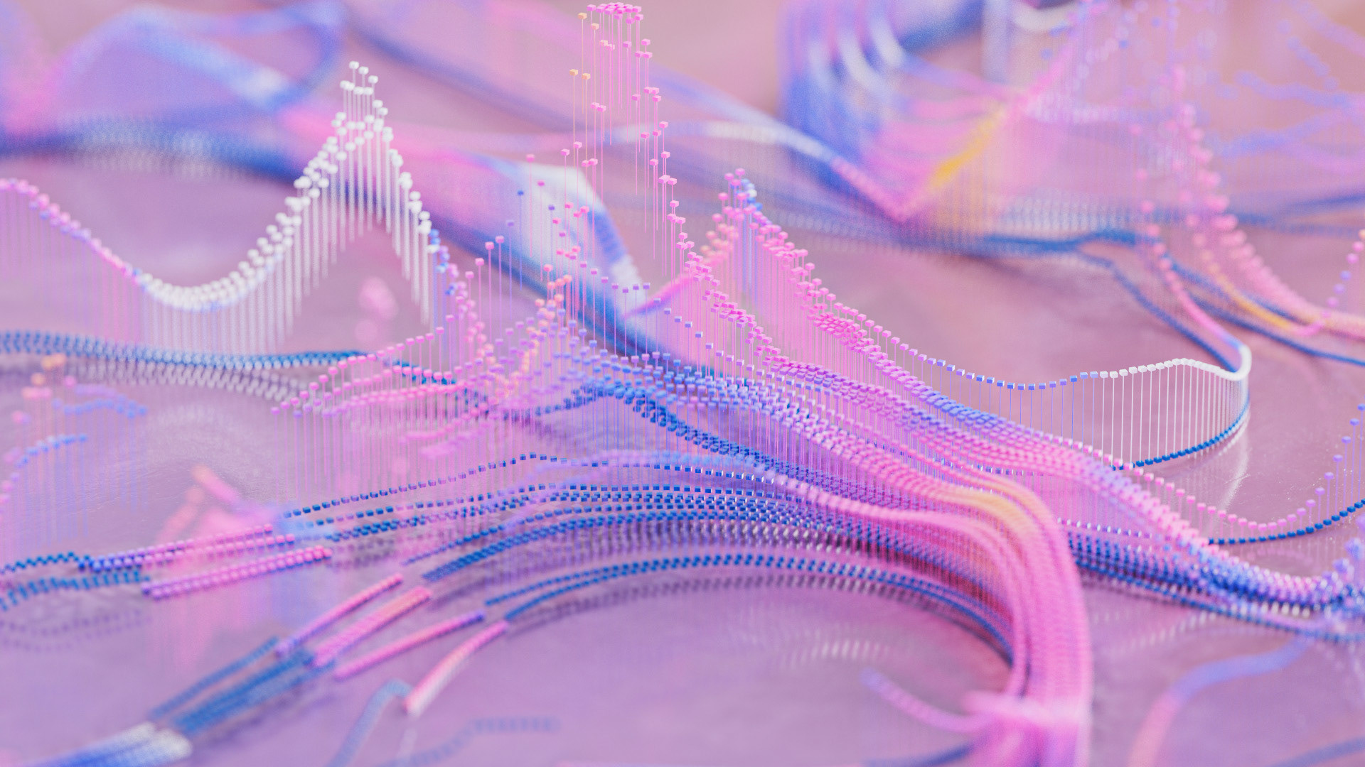 I visualized the genome as an abstract terrain that is being mapped and processed. The visual direction takes the form of a topographic landscape representing DNA, with peaks and valleys symbolizing genetic variants. The mapping is expressed through references, peaks, and tracks, while subtle details illustrate transitions and connections between molecular layers. Expansive, exploratory, and centered on discovery.